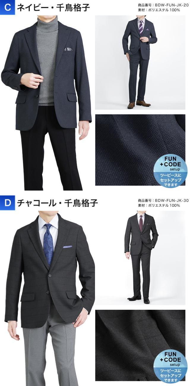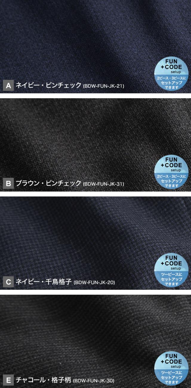 | 【A】ネイビー・ピンチェック(BDW-FUN-JK-21) 【B】ブラウン・ピンチェック(BDW-FUN-JK-31) 【C】ネイビー・千鳥格子(BDW-FUN-JK-20) 【D】チャコール・格子柄(BDW-FUN-JK-30) |