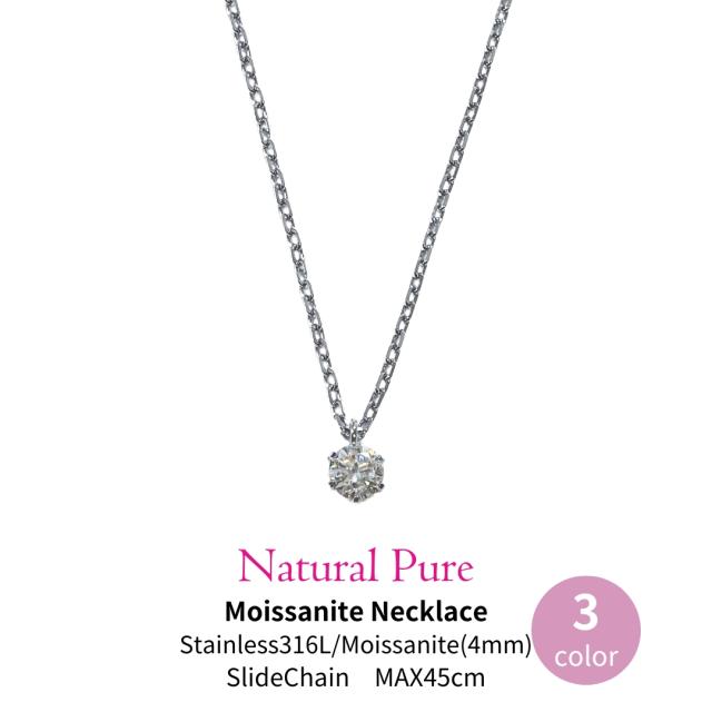 ネックレス レディース ステンレス 316l ペンダント アクセサリー モアサナイト 4mm シルバー ピンク ゴールド 金属アレルギー対応 ギフト