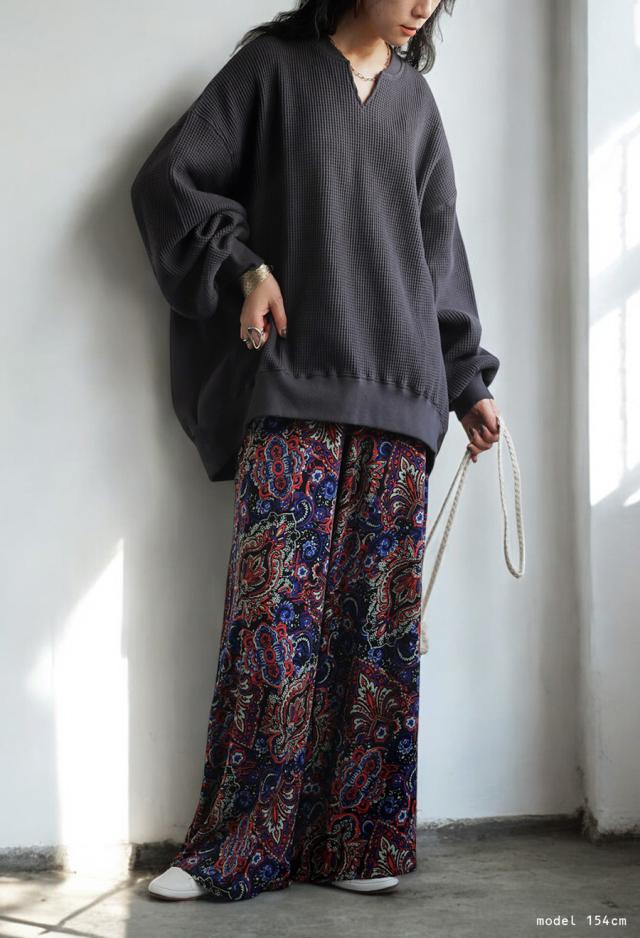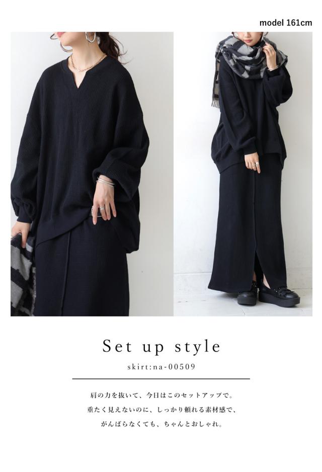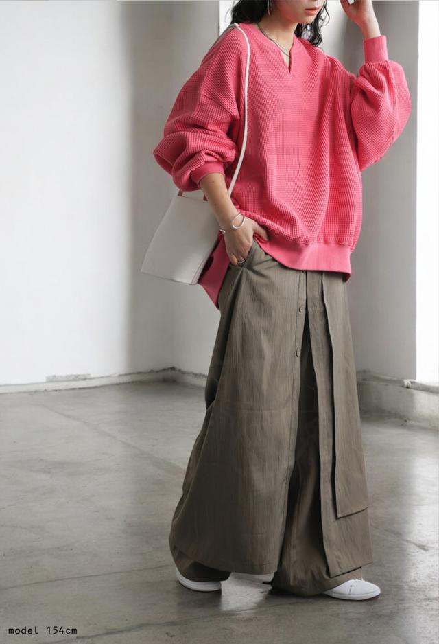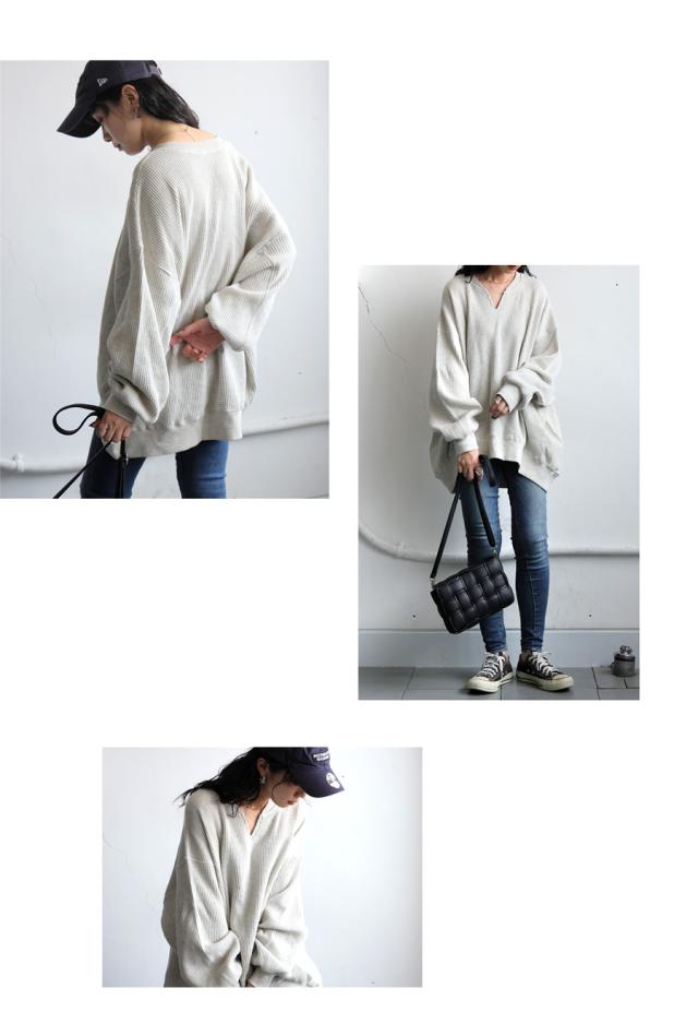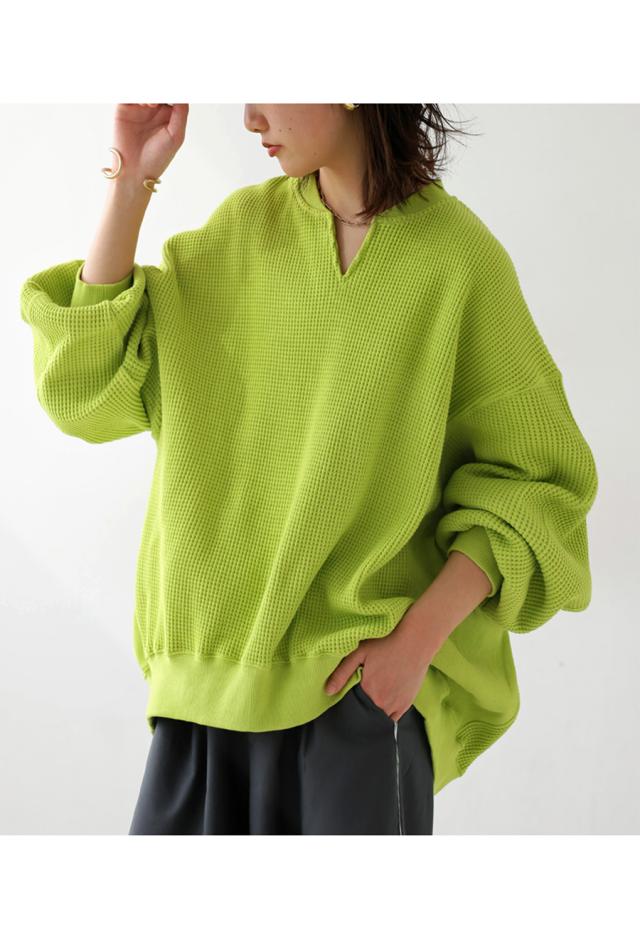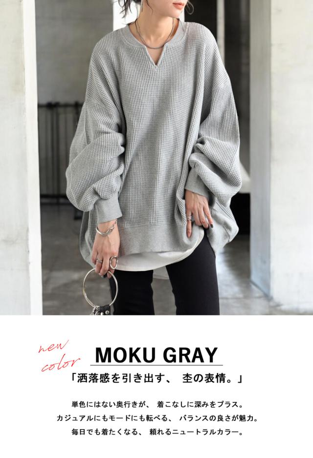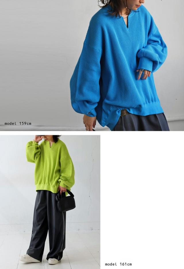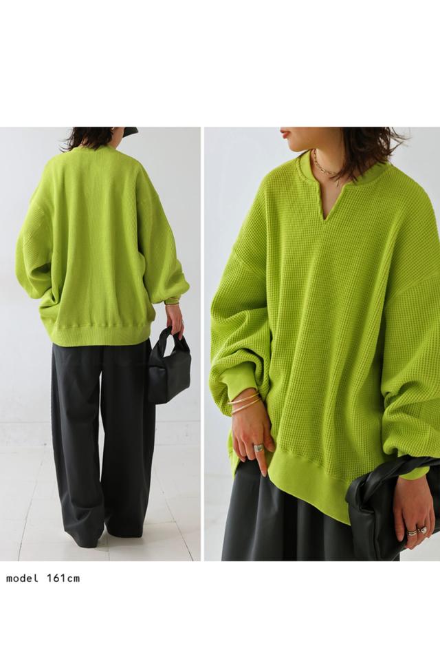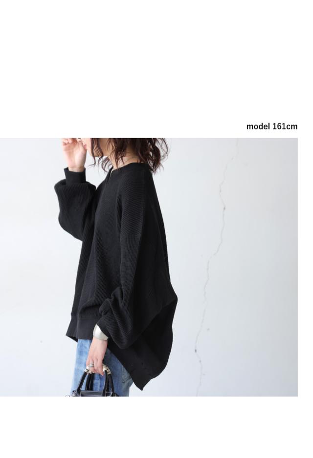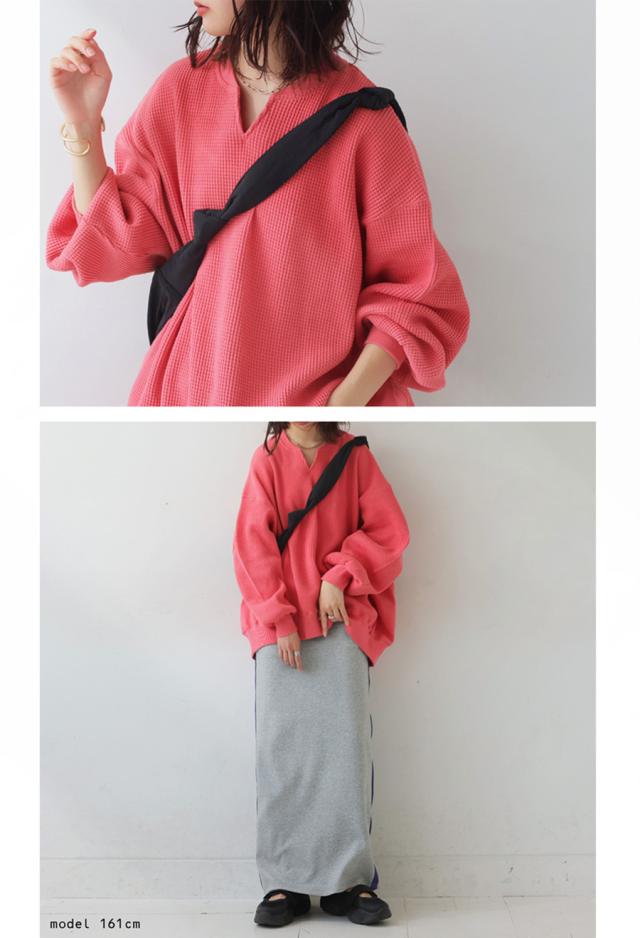 na-00482 プルオーバー トレーナー 長袖 無地 綿 コットン 鬼ワッフル シンプル クルーネック 切り替え ゆったり 前後差 ゆったり オーバーサイズ 着痩せ 体型カバー 大きめ 重ね着