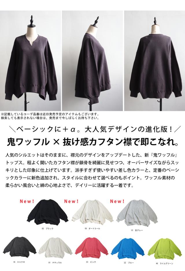 オニワッフル カフタン襟 トップス レディース 綿100 送料無料・再入荷 (600)メール便可