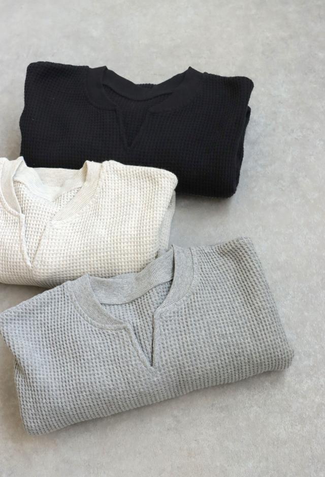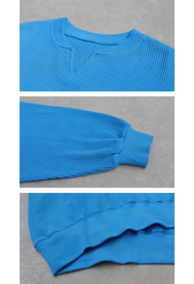 ビッグワッフル(オニワッフル)と呼ばれる、編み目の大きなワッフル生地は、綿(コットン)100%ならではのやわらかな風合いと、丈夫さが魅力です。