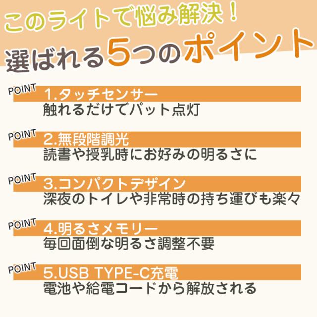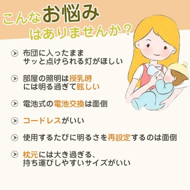 夜間の授乳時やおむつ替え、キャンプや読書の時も大活躍。 急な停電などの非常時にもとても便利!