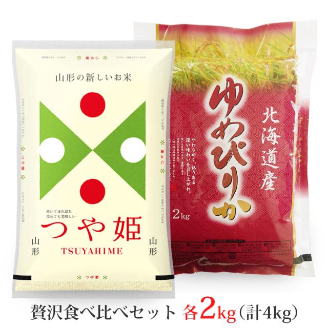 新米 令和7年 「つや姫・ゆめぴりか」山形県産・北海道産 ブランド米 食べ比べセット 4kg (各銘柄2kg) 送料無料 (無洗米 白米 玄米) 2キロ ×2 ギフト お試しサイズ ※一部地域は別途送料追加