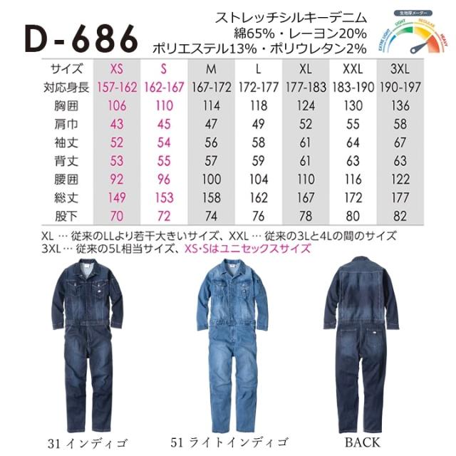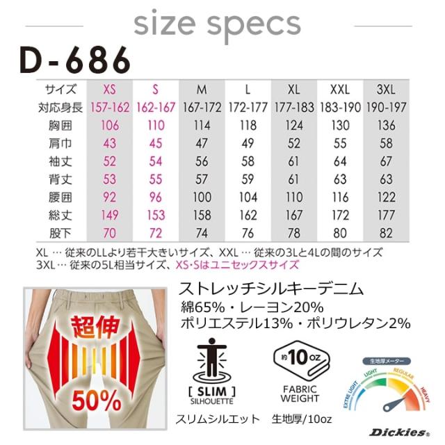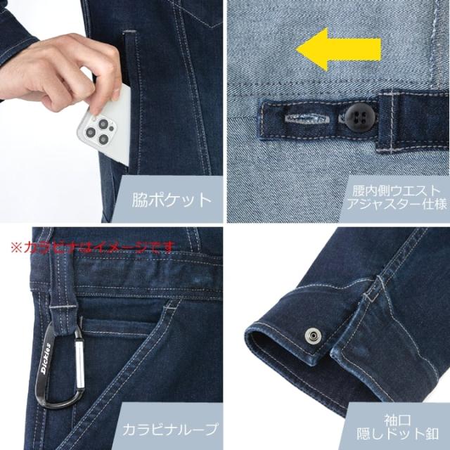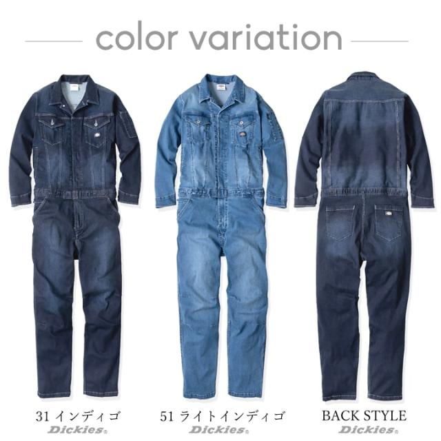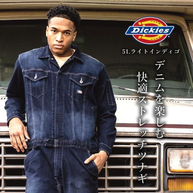 ディッキーズ つなぎ 長袖 ストレッチ デニム ジャンプスーツ D-686 作業服 作業着 Dickies ツナギ 超ストレッチ シルキー加工 おしゃれ メンズ レディース アウトドア カジュアル 農作業 農業 酪農 整備 工場 ガーデニング