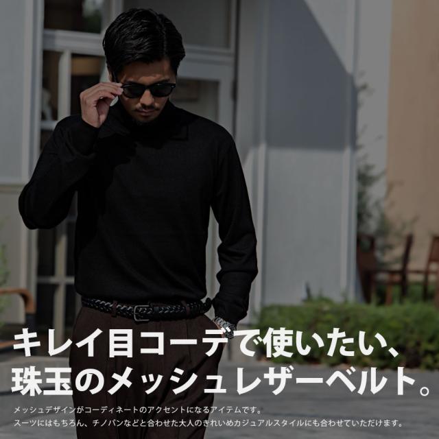レザーメッシュベルトをオーソドックスな機械編みで仕上げた1本です。