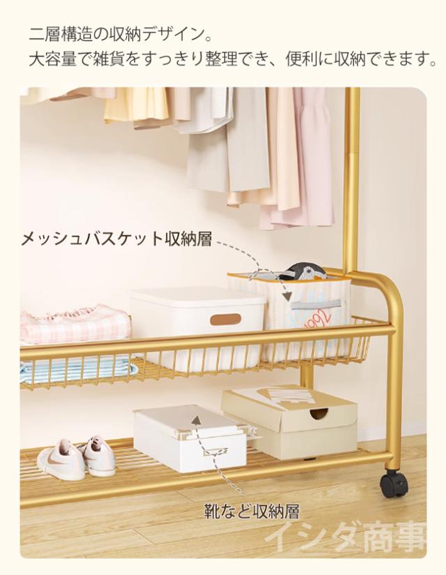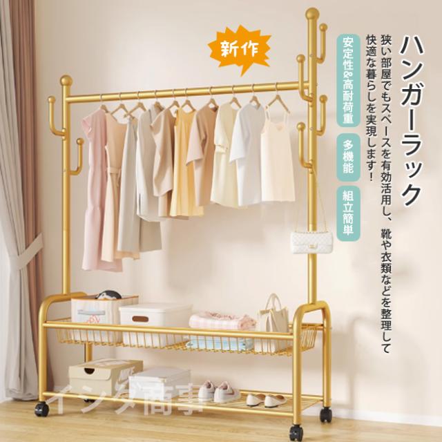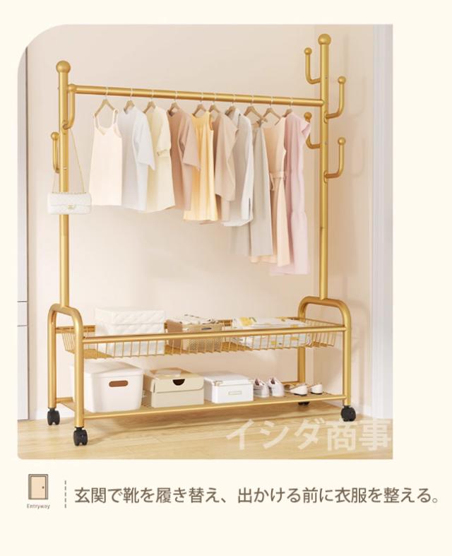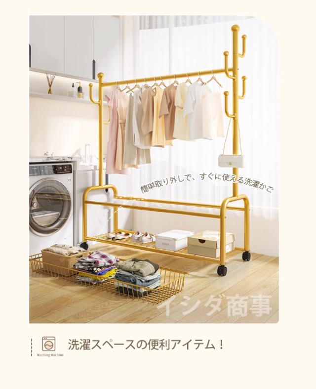 新作 ハンガーラック 頑丈 キャスター付き パイプハンガーラック 物干しスタンド 洋服ラック 洋服ハンガー ワードローブ ダブル コート掛け 衣類収納 頑丈 大容量 省スペース 組立簡単 新生活応援