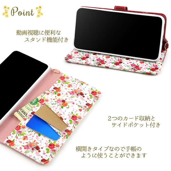 ユリやバラなど女性に人気の花を集めた、ハッピーブーケ手帳型ケース。