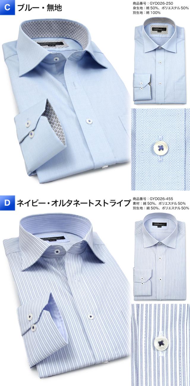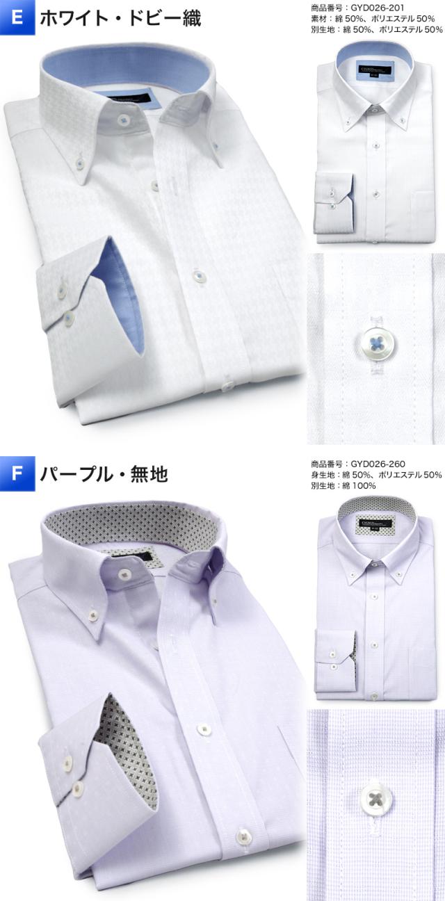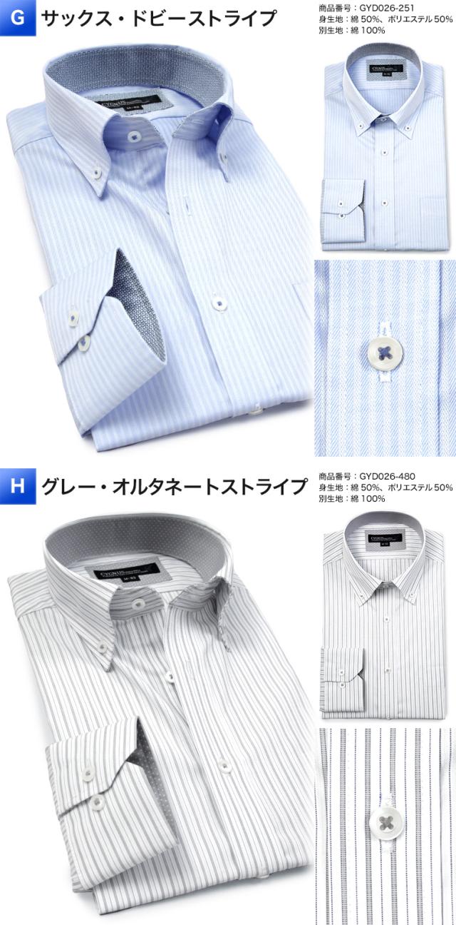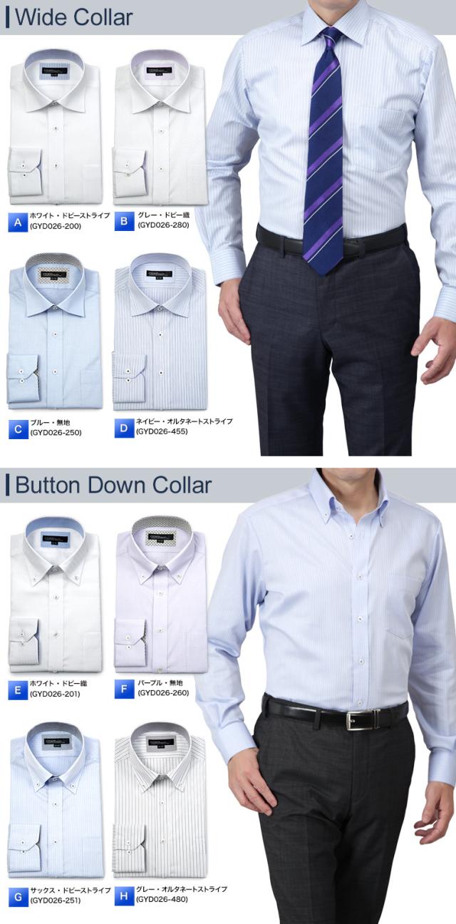| ▼ワイドカラー 【A】ホワイト・ドビーストライプ(gyd026-200) 【B】グレー・ドビー織(gyd026-280) 【C】ブルー・無地(gyd026-250) 【D】ネイビー・オルタネートストライプ(gyd026-455) ▼ボタンダウン 【E】ホワイト・ドビー織(gyd026-201) 【F】パープル・無地(gyd026-260) 【G】サックス・ドビーストライプ(gyd026-251) 【H】グレー・オルタネートストライプ(gyd026-480) |