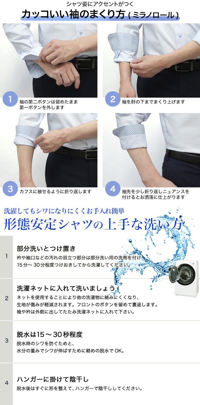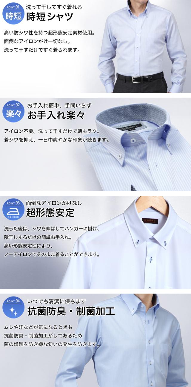 | ・ワイドカラー/ボタンダウン ・超形態安定(ノーアイロン) ・抗菌加工 ・防臭加工 ・制菌加工 ・ウォッシャブル(ご家庭の洗濯機で洗えます) |