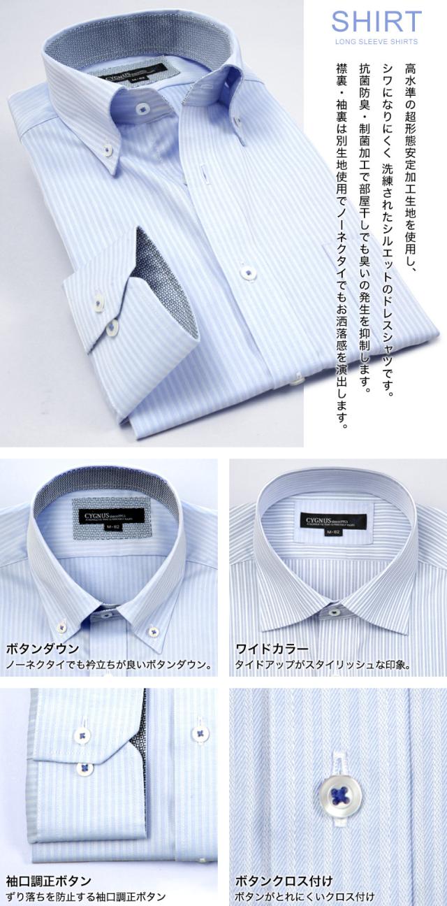 ワイシャツ CYGNUS(シグナス) ボタンダウン ワイドカラー ノーアイロン 超形態安定 抗菌加工 防臭 制菌 長袖 春夏秋冬 オシャレ ビジネス カジュアル Yシャツ おしゃれ ブランド S/M/LL/L