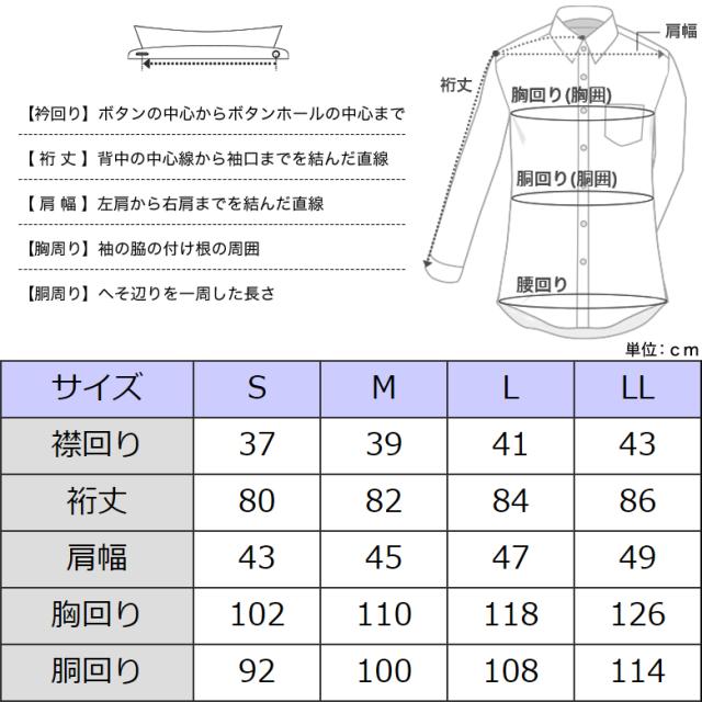 | サイズはお客様の首回りの実寸値より、プラス2cm〜3cmの襟回りのシャツが目安となります。 またはお手持ちのドレスシャツの襟回りサイズをご確認ください。 |