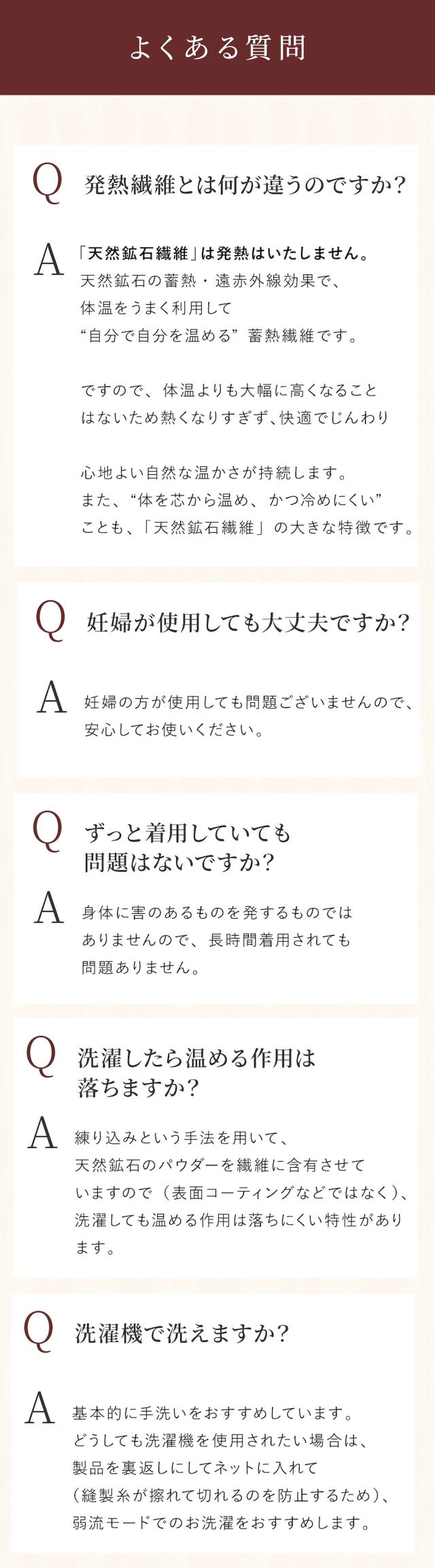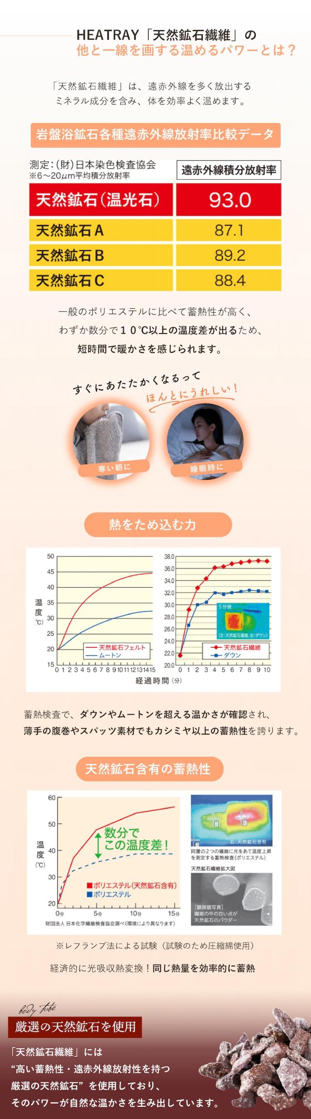 畜熱性に優れた天然鉱石を練り込んだ繊維が、カラダもココロもポカポカと温めてくれます。 高い畜熱性で、カラダの芯まで温めてくれます。