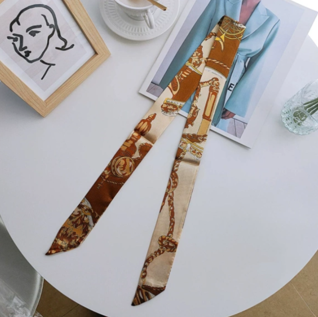 シルク調のツイリーバッグスカーフです。