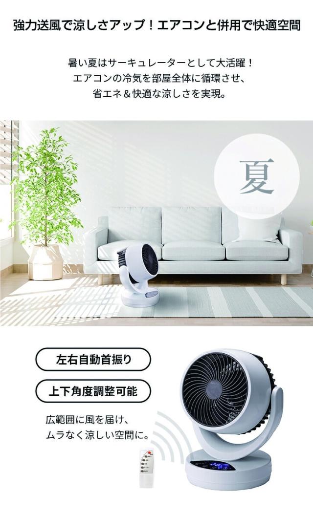2.涼しい夏に: 冷風モード(消費電力35W)は、サーキュレーターとして室内の空気を効率よく循環させ、エアコンと併用することで省エネにも貢献します。約20〜25℃の心地よい風で、暑い夏も快適にお過ごしいただけます。
