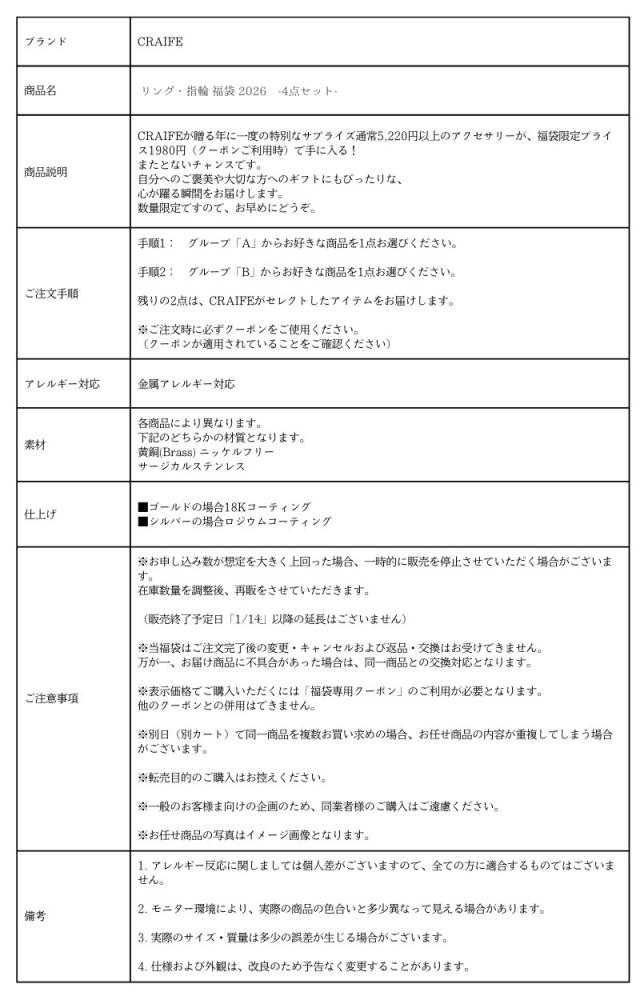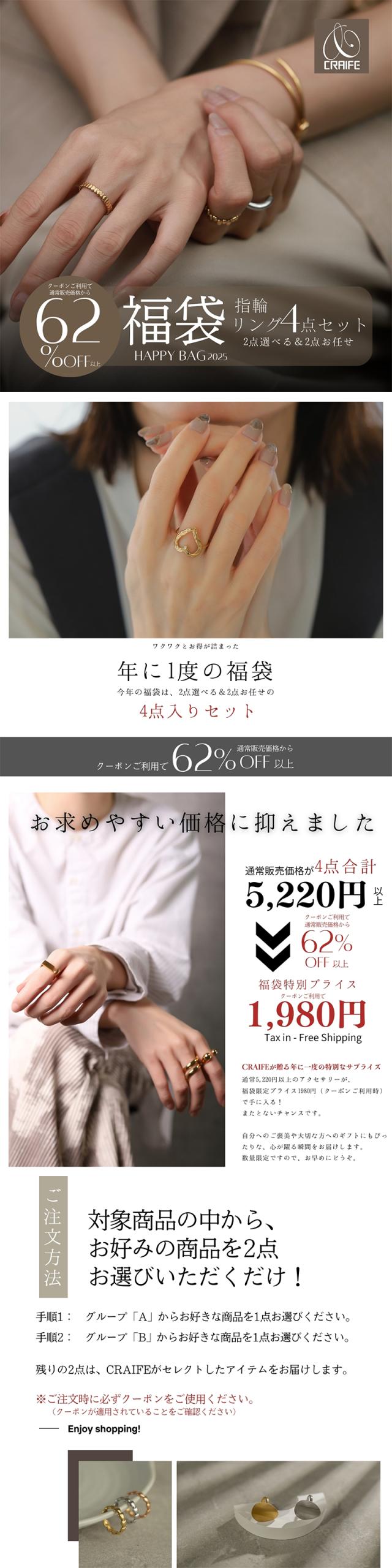 【クーポンご利用で1,980円】 【 福袋 】 2点選べる&2点お任せ リング・指輪 4点セット シンプル モダン 大人 かわいい ジュエリー ゴールド シルバー 送料無料 最長90日保証 プチプライス高見え CRAIFE