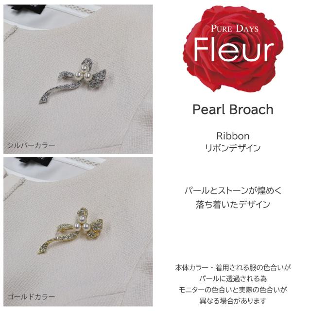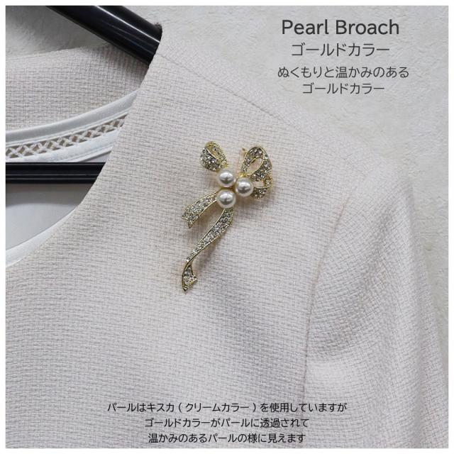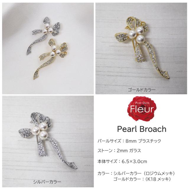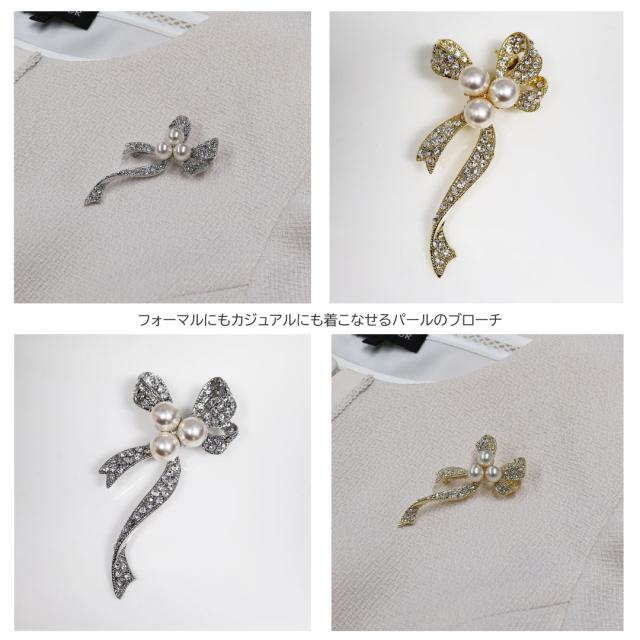 パールブローチ 真珠ブローチ 真珠 パール ピン ブローチ リボン ホワイト 白 シルバー ゴールド 結婚式 入学式 卒業式 フォーマル