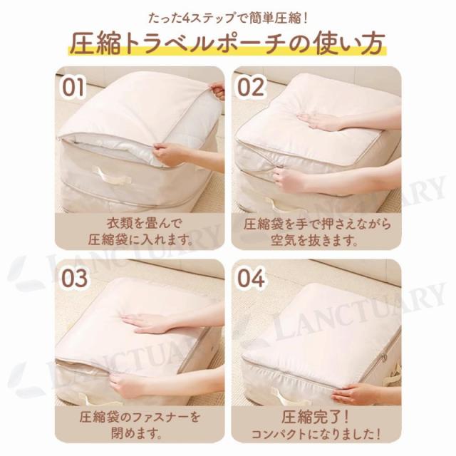 この圧縮トラベルポーチを使えば、衣類をコンパクトに収納することができます。 圧縮することで、スーツケース内のスペースを有効活用できるだけでなく、衣類のシワを防ぐ効果も期待できます。