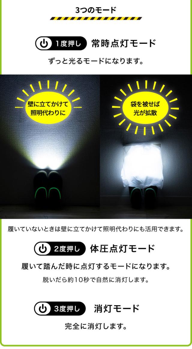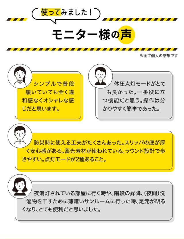 踏むと光る体圧センサー入り防災用ルームシューズ。災害時はもちろん日常にも大活躍。