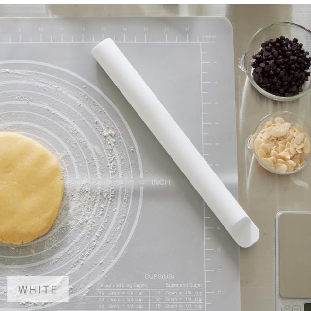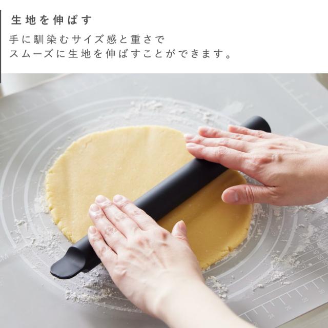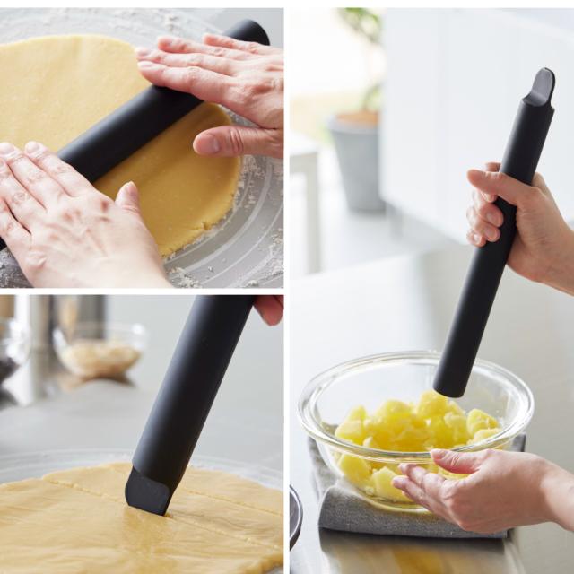 「伸ばす」「切る」ができる2WAY仕様のシリコーン製めん棒。生地を伸ばすめん棒や、生地をカットするスケッパーとして使える2WAY仕様のキッチンツール。手に馴染むサイズ感と重さでスムーズに生地を伸ばせます。