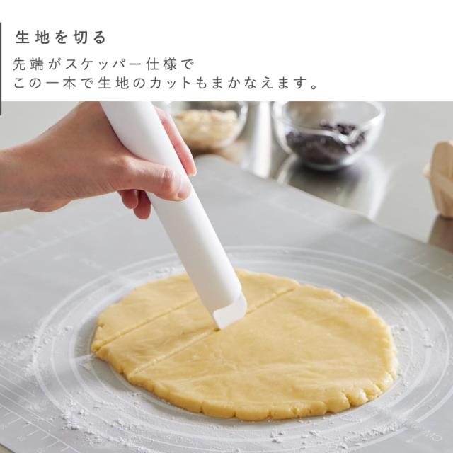 先端がスケッパー仕様になっているので生地をスムーズにカットできます。食洗機OK。