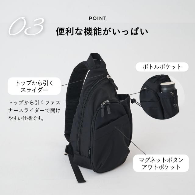 ママカルのボディバッグは、男女問わず使えるおしゃれなデザインが魅力です。斜めがけスタイルで、両手が自由になるのでアクティブなシーンでも大活躍!撥水加工が施されているので、急な雨でも安心です。軽量設計だから、長時間の使用でも疲れにくいのが嬉しいポイント。シンプルなデザインなので、どんなコーディネートにもマッチします。日常使いから旅行まで、幅広いシーンで使える便利なアイテムです!