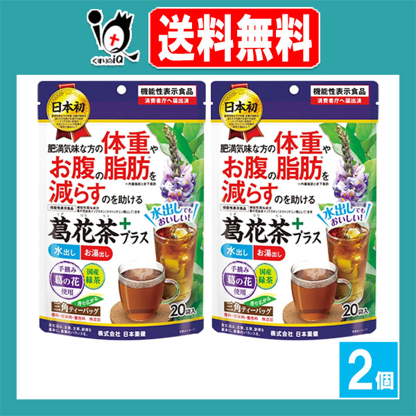 【機能性表示食品】葛花茶プラス 20袋入×2個セット【日本薬健】【訳あり大量仕入れ】肥満気味な方の体重やお腹の脂肪を減らすのを助ける 葛の花由来イソフラボン含有ブレンド茶 ブレンドティー ティーバッグタイプ ノンカフェイン