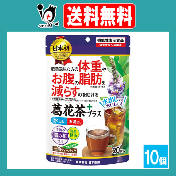 【機能性表示食品】葛花茶プラス 20袋入×10個セット【日本薬健】肥満気味な方の体重やお腹の脂肪を減らすのを助ける 葛の花由来イソフラボン含有ブレンド茶 ブレンドティー ティーバッグタイプ ノンカフェイン ブレンド茶