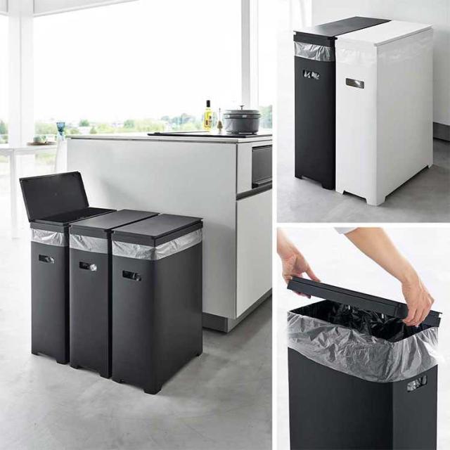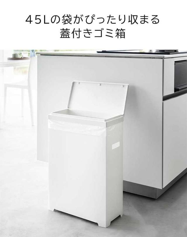 スリム蓋付きゴミ箱 横開きタイプ 山崎実業 タワー ゴミ箱 45リットル 対応 スリム おしゃれ ふた付き キッチン ダストボックス 棚下 カウンター下 蓋付き フタ付き 大容量 中身 見えない 分別 ごみ箱 ホワイト ブラック 白 黒 シンプル モノトーン 1524 1525 tower 公式