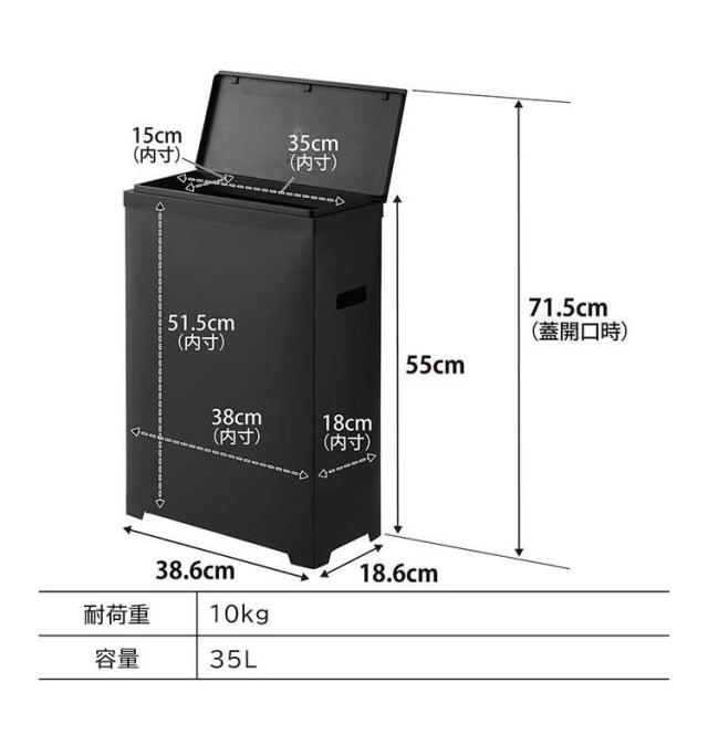 【スリム蓋付きゴミ箱 横開きタイプ】 組み立て簡単!45Lゴミ袋がぴったり収まるスリムな横開き蓋付きゴミ箱。蓋が横に開くのでパントリーや食器棚下スペースにも収納可能。複数並べてペットボトル・空き缶・資源ゴミなどの分別におすすめです。蓋付きなので、中身が見えずにおいも防ぐので衛生的。ハンドル穴付きで移動も簡単です。 ■ブランド名 tower / タワー ■JAN 4903208015240 / 4903208015257 ■品番 1524 / 1525 ■サイズ [ 外寸 ] 本体:約W18.6×D38.6×H55cm 蓋開口時:H71.5cm [ 内寸 ] 容器:W18×D38×H51.5cm 蓋開口部:W15×D35cm ■対応サイズ 45L・30L・20Lのゴミ袋 20・30・45号のレジ袋(関東) 35・40・45号のレジ袋(関西) ■容量 約35L ■重量 約1.35g ■耐荷重 約10kg ■素材 蓋・容器・底板:ポリプロピレン クッション:シリコーン ■耐熱・耐冷温度 耐熱:90℃ 耐冷:-40℃ ■生産国 中国 ■備考 組立式 レビュー商品の評価: お店の情報お店の評価: 連絡・応対 - 配送スピード - 梱包 - 注目の特集 | |||||||||||||||||