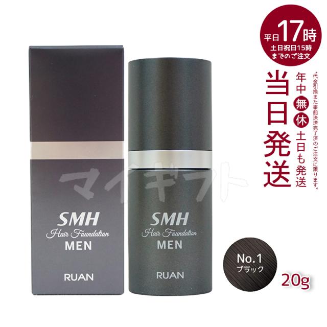 ルアン SMH メンズ ヘアファンデーション 20g No.1 ブラック 髪 頭 薄毛隠し 分け目 つむじ ボリューム ふりかけ 植物系抗菌繊維