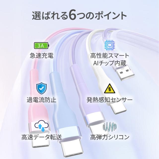 USB to Type-Cケーブル 【2本セット】 シリコン USB PD66W対応 タイプCケーブル 2m 1.2m 50cm iPhoneケーブル android 急速充電ケーブル 充電器 高速データ転送 断線防止 付根保護 typec iPhone15/iPhone16対応 タイプC 充電コード