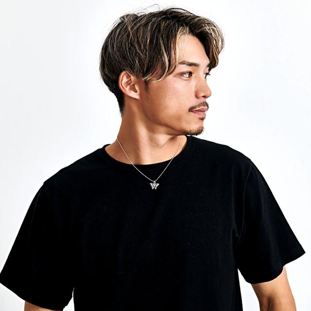 ファインスチールを使用したバタフライモチーフのネックレス。