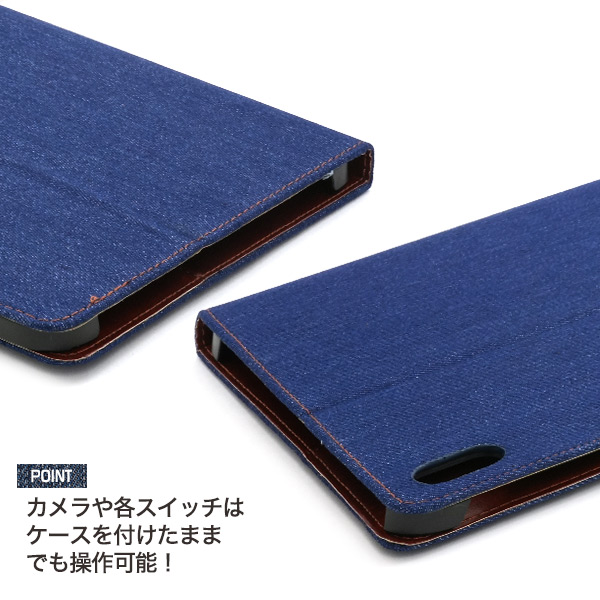 カードポケット・スタンド機能付きデニムデザイン手帳型ケース