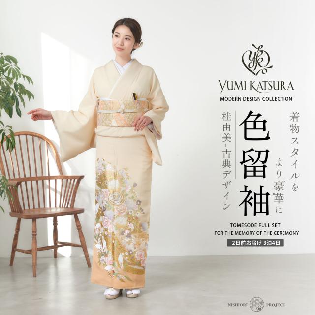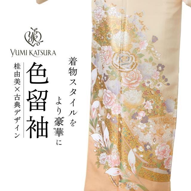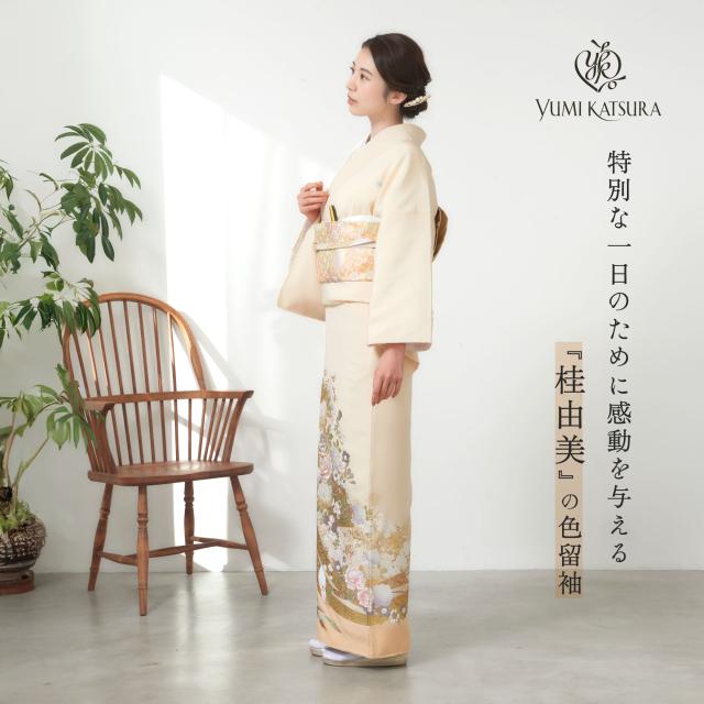 桂由美 色留袖 フルセット ベージュ 伝統とモダンが融合した結婚式・フォーマル着物ブランド レンタル 着物セット フルセット【結婚式 婚礼 貸衣装】【往復送料無料】古典 百合 薔薇 No.235