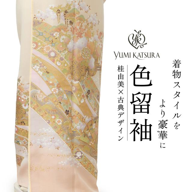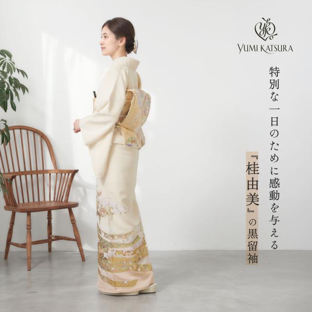 桂由美 色留袖 フルセット ベージュ 伝統とモダンが融合した結婚式・フォーマル着物ブランド レンタル 着物セット フルセット【結婚式 婚礼 貸衣装】【往復送料無料】古典 扇 御所車 No.236