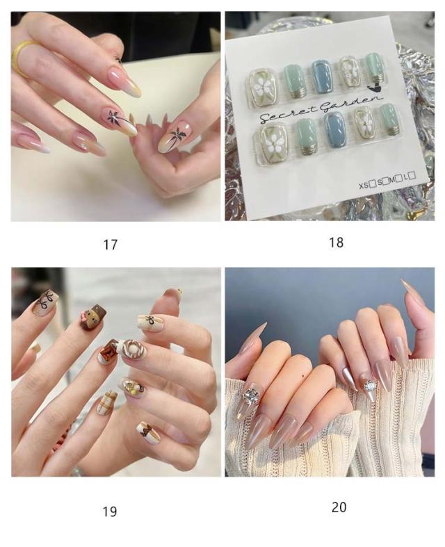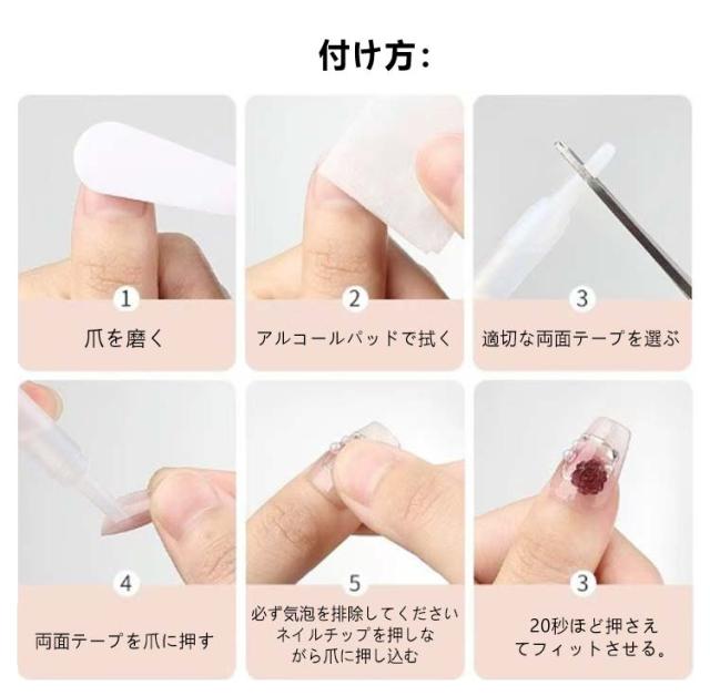 | 【ネイルチップ】【全20種類】【工具付き】 華やかなデザインのネイルチップです。 サイズはXS S Mございます。 5点工具付き 付け方: 爪を磨く アルコールパッドで拭く 適切な両面テープを選ぶ 両面テープを爪に押す 必ず気泡を排除してください ネイルチップを押しながら爪に押し込む 20秒ほど押さえてフィットさせる。 | |