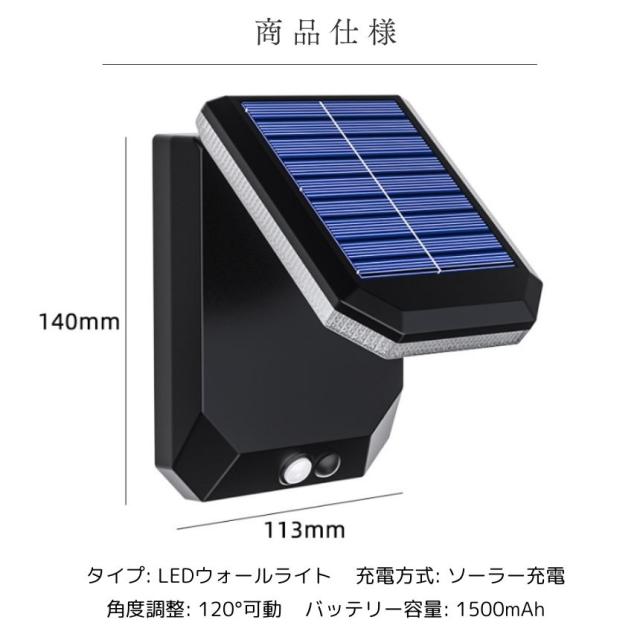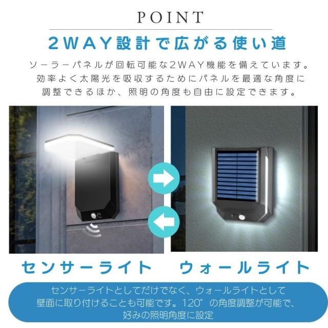 ソーラーライト センサーライト 屋外 防水 ウォールライト ガーデンライト 人感センサーライト 角度調整 折りたたみ 明るい ソーラーセンサーライト LEDライト 人感センサー 防犯 ライト 防災 LED 夜間 照明 玄関 駐車場