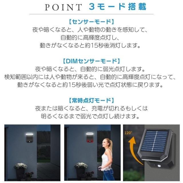 照明モード: センサーモード、DIMセンサーモード、常時点灯モード