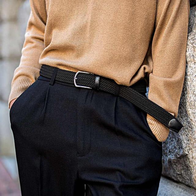 ウエストゴムのような伸縮性でくストレスフリーな付け心地が魅力のベルト。