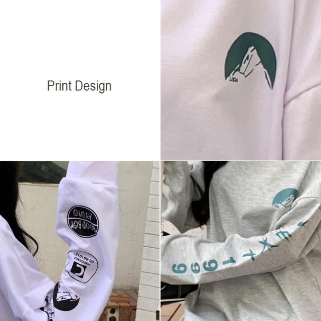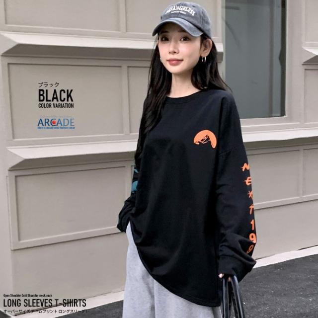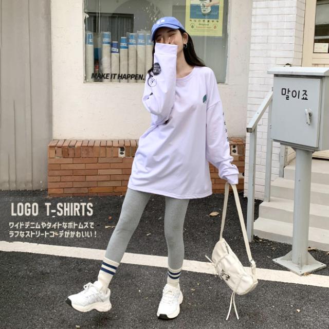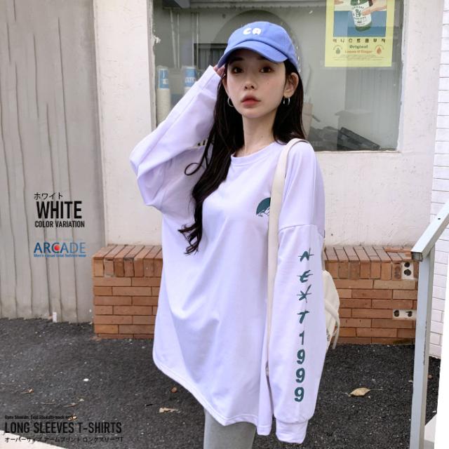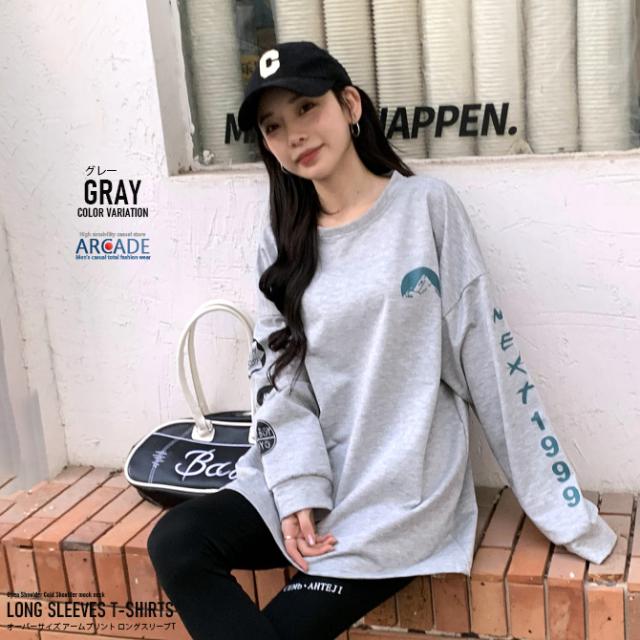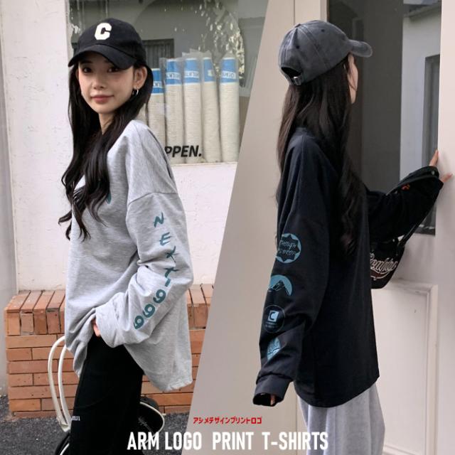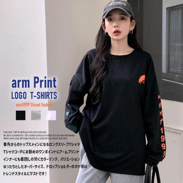 オーバーサイズ 袖プリント ロンT カットソー レディース 春 長袖Tシャツ カットソー