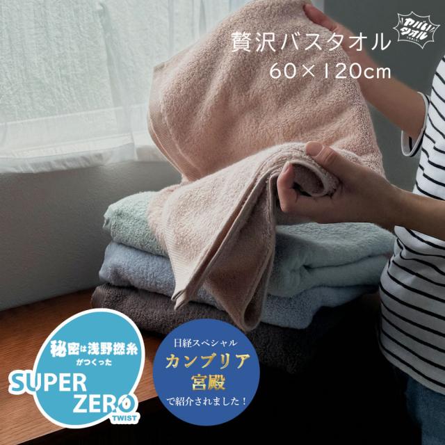 バスタオル ヤバいタオル タオル 贅沢バスタオル スーパーゼロ 浅野撚糸 4色 タオル カラータオル コットンタオル ふんわり 吸水 綿100% プレゼント 贈り物 ギフト 60×120cm