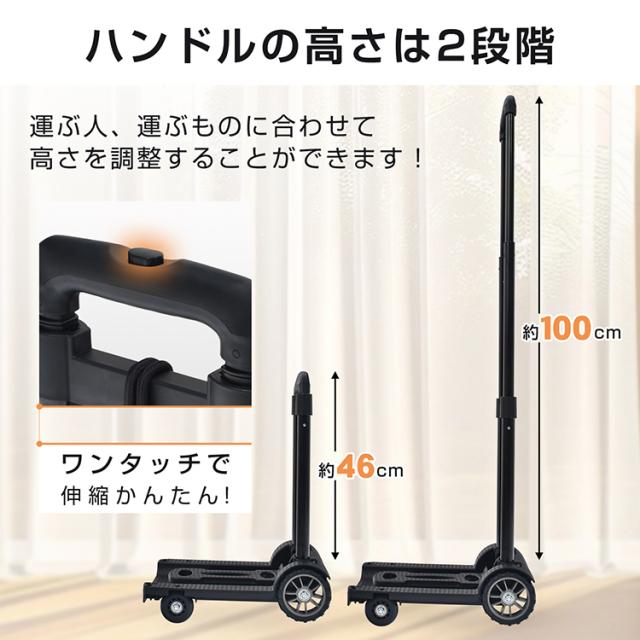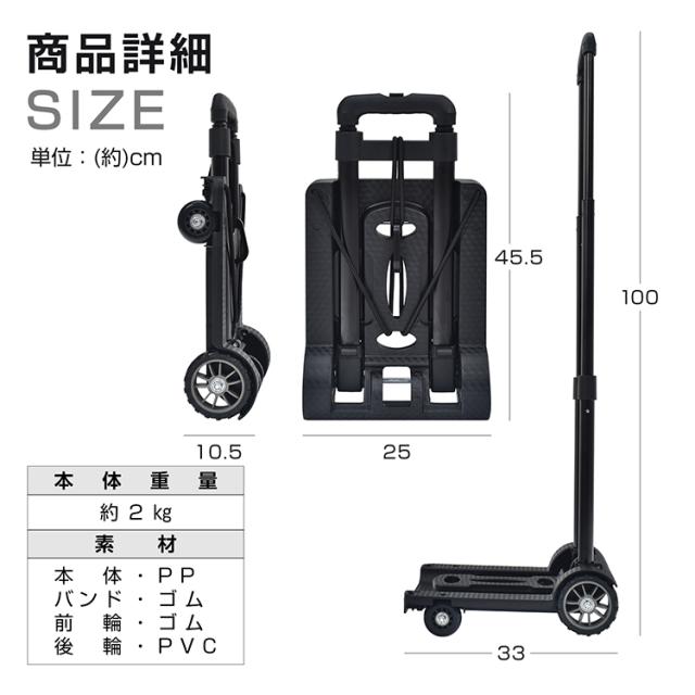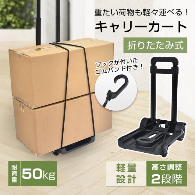キャリーカート 折りたたみ 折り畳み 台車 アウトドア 耐荷重50kg 軽量 2kg 高さ2段階 頑丈 コンパクト ワンタッチ 4輪 キャスター 荷締めゴム 荷崩れ防止 ゴムバンド 運搬 旅行 買い物 ゴミ捨て キャンプ 釣り レジャー wk010
