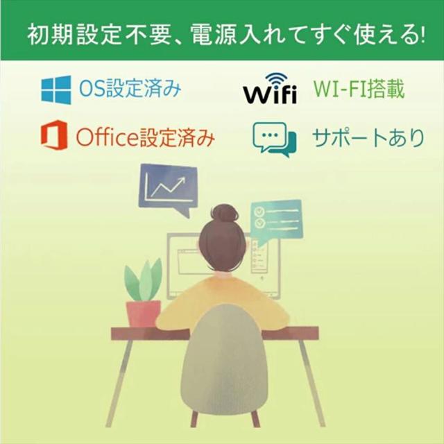 最新版OS Windows 11 Professional標準搭載、Office 2019を事前インストール済み、初期設定不要でご利用いただけます。文書作成ソフトウェアや表計算ソフトウェアなど、主にオフィスで使用されるアプリケーションソフトを「Officeソフト」といいます。会社や大学など、事前に使用することが分かっている場合はMS Officeが付属したモデルがおすすめです。Word、Excel、PowerPointなど仕事に不可欠なソフトすべて事前インストールされています。