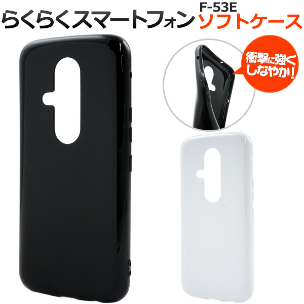 スマホケース らくらくスマートフォン F-53E用 ソフトケース 黒 白 携帯カバー ストラップホール付き 無地 携帯ケース キズ 汚れ防止 スマホカバー 装着簡単 背面保護カバー バックカバー デコ用 スマートフォンケース 簡単スマホ シニア