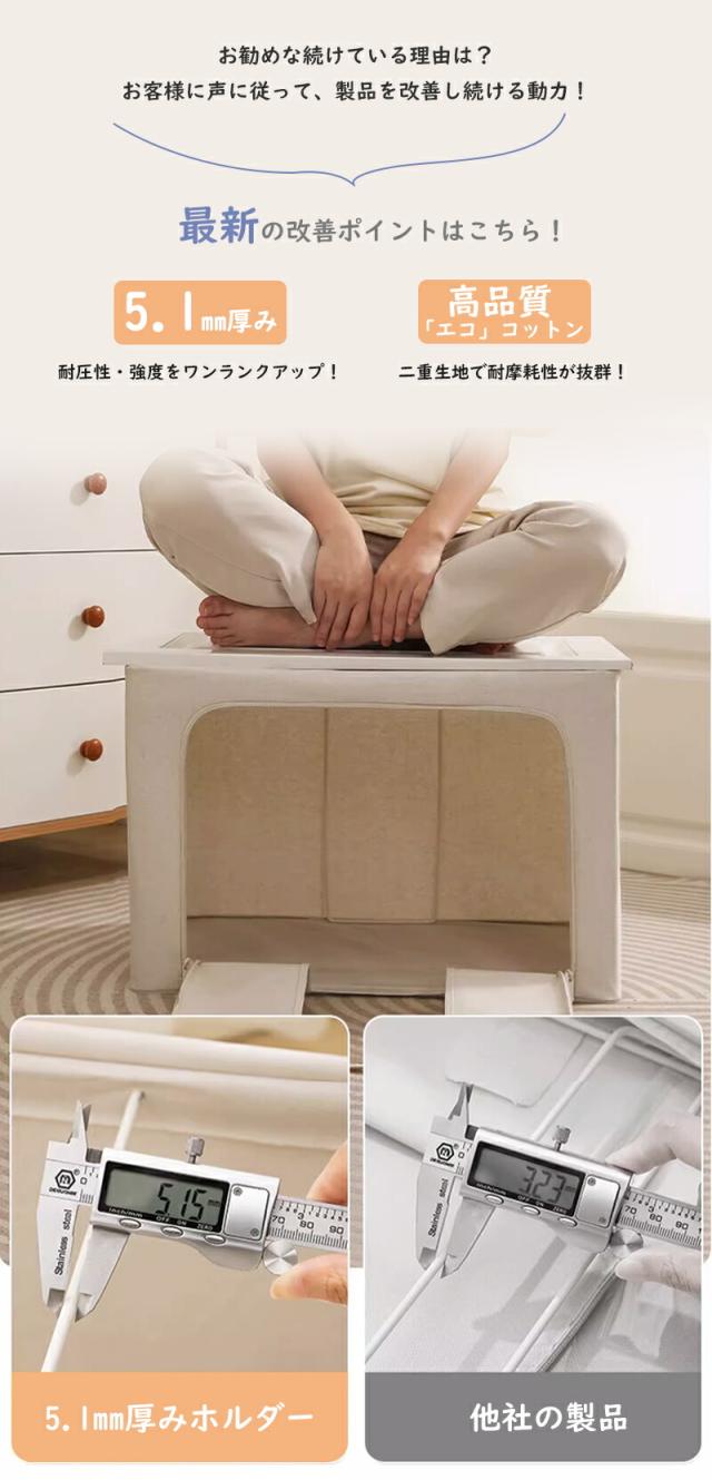 - 製ながらもしっかりした作りで、大容量なのに折りたたむと驚くほどコンパクトに。フタ付きでホコリを完全シャットアウト、前開きデザインで押し入れの奥の物もラクラク取り出せます。
