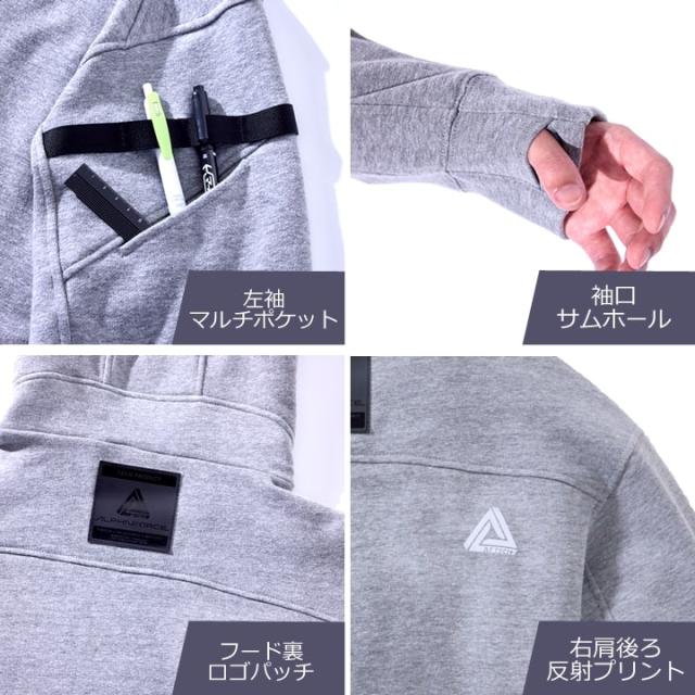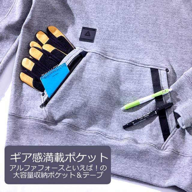 【即日発送】パーカー スウェット フーディー 裏パイル生地 オーバーサイズ プルオーバー ワークギア 作業服 ワークウエア スポーツ 36-3203 アルファフォース 多収納 反射プリント 秋冬 春 メンズ レディース 現場 作業着 作業服 アルトコーポレーション