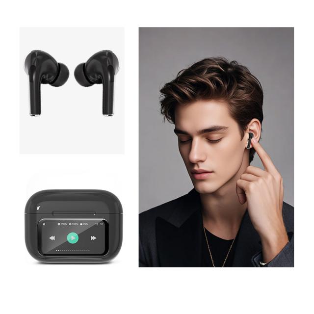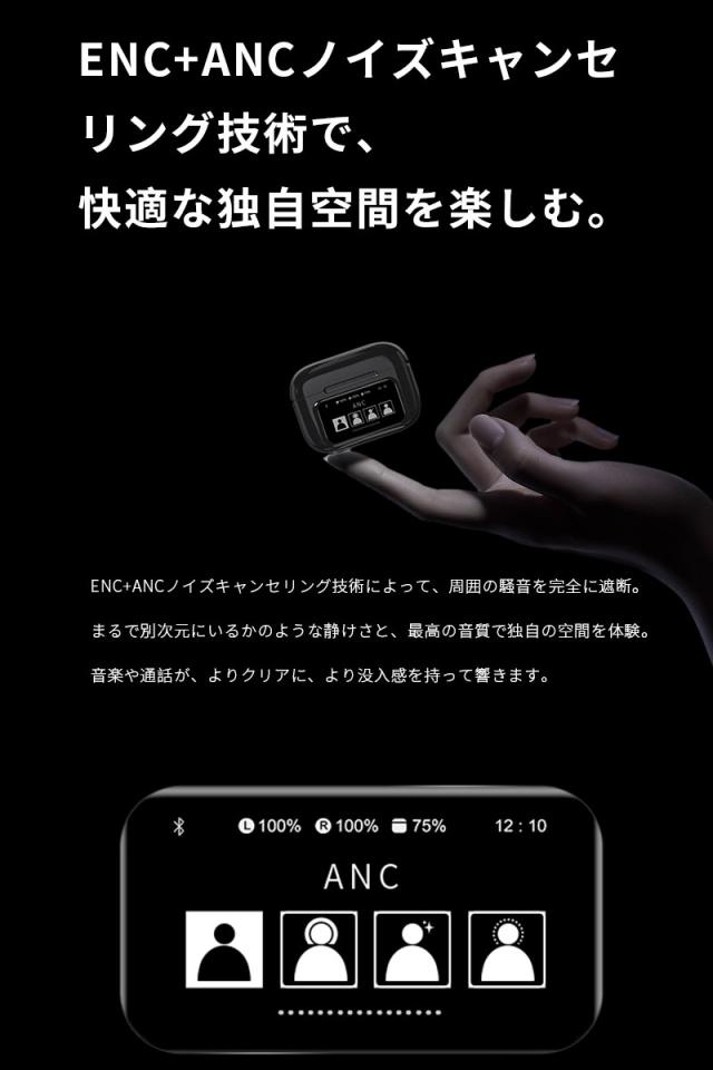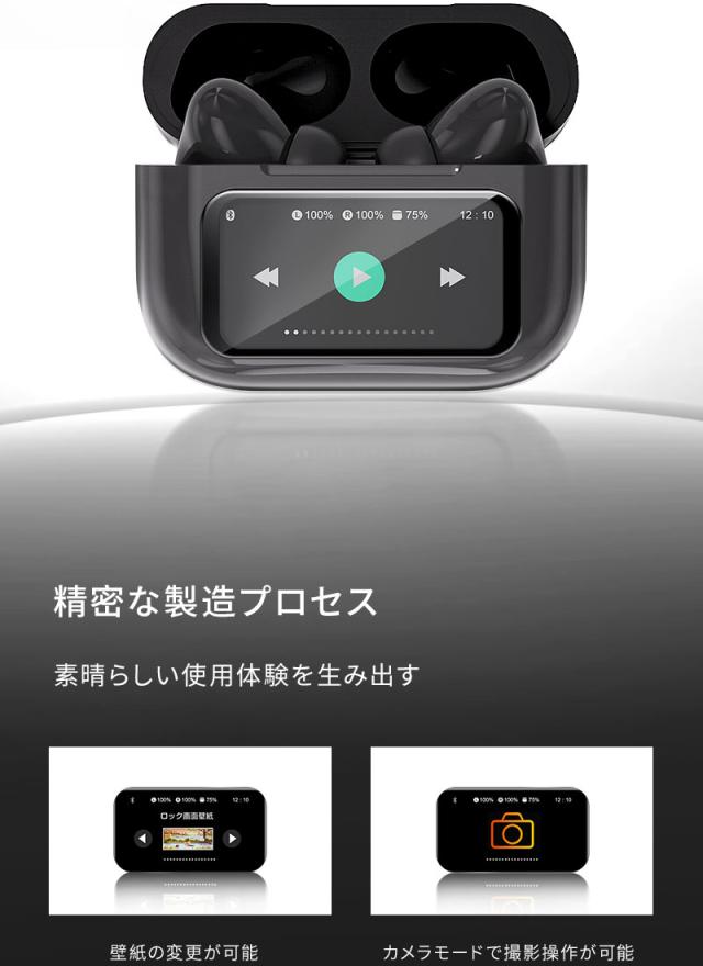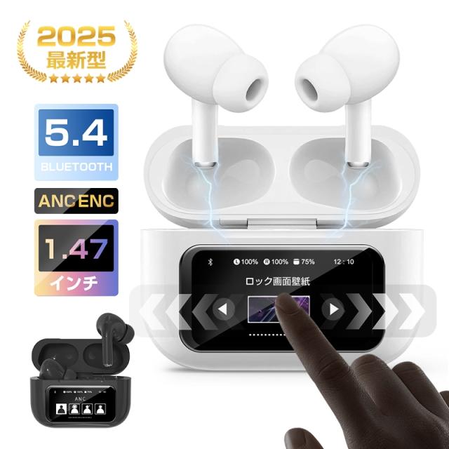 2025最新モデル ワイヤレスイヤホン 液晶付きイヤホン ヘッドセット Bluetooth5.4 大画面搭載 1.47インチ カラースクリーン ANC+ENC ノイズキャンセリング 操作簡単 TWS カナル型 ステレオサウンド 自動ペアリング 左右分離型 低遅延 防水防滴 【PL保険加入済み製品・安心】