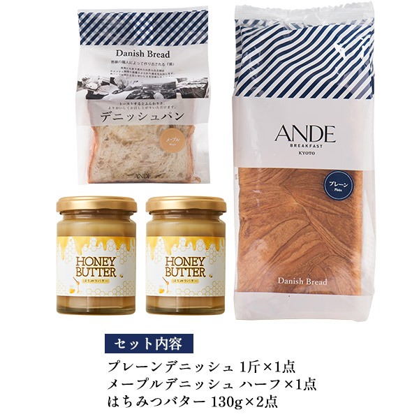 ANDE デニッシュ食パン ギフト はちみつバター付き(プレーン1斤 / メープルハーフ)贈り物 トースト 贈答用 デニッシュパン 食パン アンデ 人気店 お取り寄せグルメ プレゼント お取り寄せ 食品 直送 常温配送 送料無料 国産 京都 日本 ハチミツバター