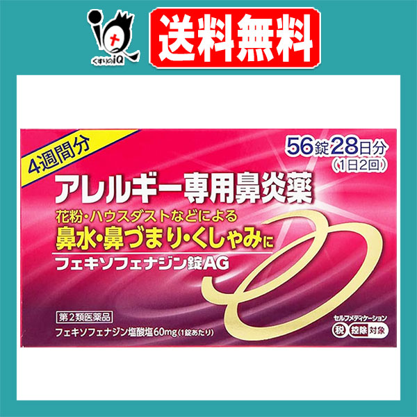 【第2類医薬品】★フェキソフェナジン錠AG 56錠(28日分)【キョーリンリメディオ】アレルギー専用鼻炎薬 花粉・ハウスダスト等による鼻みず・鼻づまり・くしゃみに アレグラ アレルビと同じフェキソフェナジン塩酸塩配合