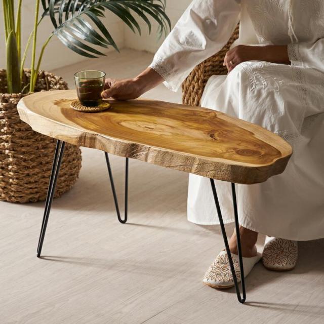 天然木チークウッドを活かした1点ものの切り株コーヒーテーブルが、あなただけの特別な空間を演出。
